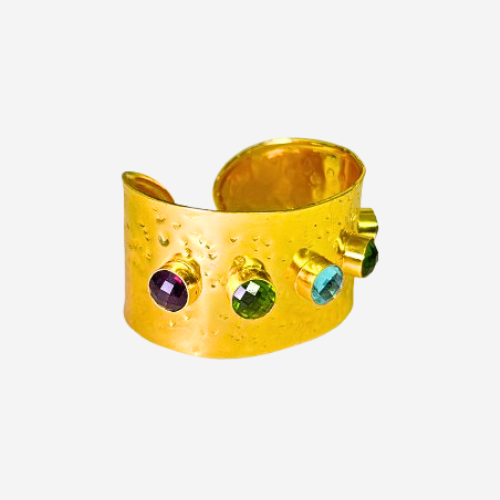 La collection de bracelets en laiton à l'or fin présente une élégance intemporelle avec une touche moderne. Chaque pièce, finement travaillée, capture l'essence d'un style raffiné grâce à la qualité du laiton plaqué à l'or fin, qui apporte une brillance douce et durable. Ces bracelets se déclinent en plusieurs modèles : certains sont délicatement martelés pour une texture organique, d'autres sont lisses et polis pour un effet miroir, tandis que des designs plus audacieux incluent de fines gravures ou des motifs géométriques.